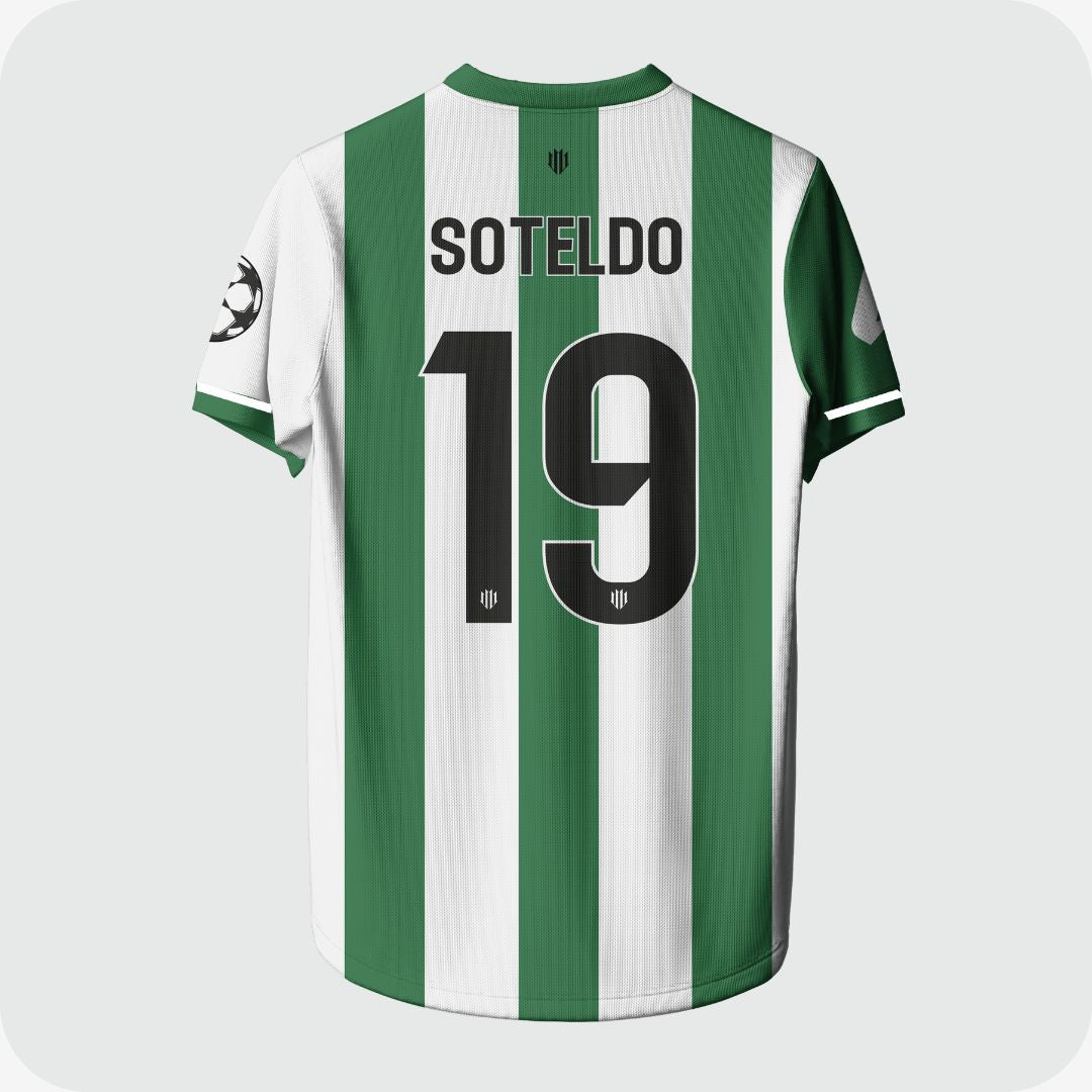 La camiseta permite la personalización de nombre y dorsal, manteniendo la identidad y el estilo oficial del club.